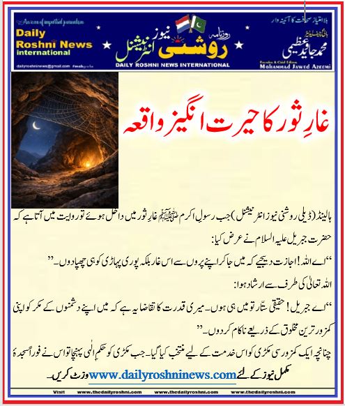ہالینڈ(ڈیلی روشنی نیوز انٹرنیشنل )جب رسولِ اکرم ﷺ غارِ ثور میں داخل ہوئے تو روایت میں آتا ہے کہ حضرت جبریل علیہ السلام نے عرض کیا:
