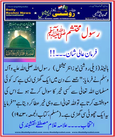 ” جمعے کے دن میں ایک گھڑی ایسی ہے کہ کو ئی مسلمان اللہ تعالیٰ سے کسی خیر کا سوال کرتے ہو ئے اس کی موافقت کرتا ہے تو اللہ تعا لیٰ اسے وہی خیر عطا کر دیتا ہے”