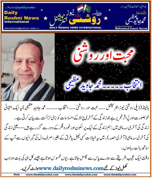 ہالینڈ(ڈیلی روشنی نیوز انٹرنیشنل ۔۔۔ محبت اور روشنی ۔۔۔ انتخاب ۔۔۔۔۔ محمد جاوید عظیمی)یہ ایک انتہائی خوبصورت اور پُر اثر تحریر ہے جو زندگی کے آخری پڑاؤ کے احساسات کو بڑی نزاکت سے بیان کرتی ہے۔