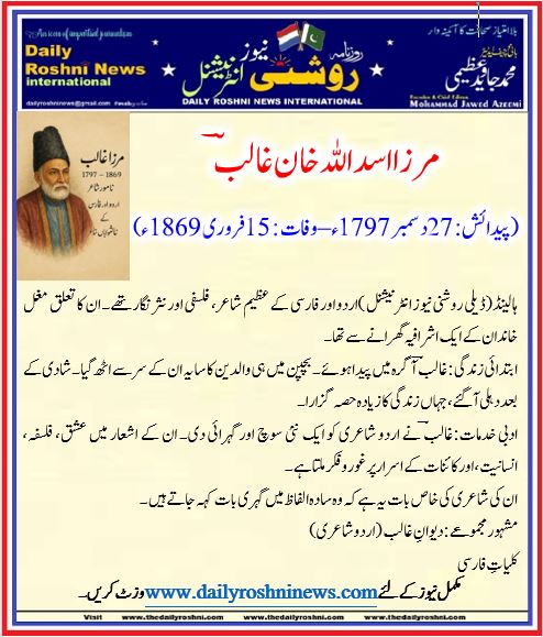 مرزا غالبؔ 15 فروری 1869ء کو دہلی میں وفات پا گئے۔