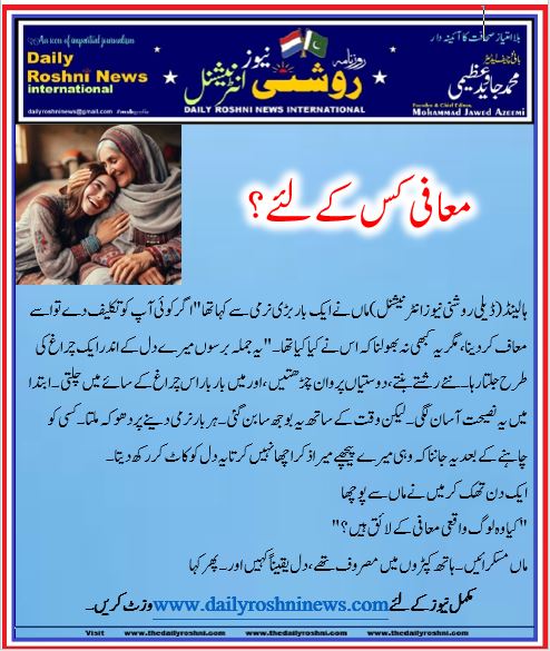 ہالینڈ(ڈیلی روشنی نیوز انٹرنیشنل)ماں نے ایک بار بڑی نرمی سے کہا تھا”اگر کوئی آپ کو تکلیف دے تو اسے معاف کر دینا، مگر یہ کبھی نہ بھولنا کہ اس نے کیا کیا تھا۔”یہ جملہ برسوں میرے دل کے اندر ایک چراغ کی طرح جلتا رہا۔ نئے رشتے بنتے، دوستیاں پروان چڑھتیں، اور میں بار بار اس چراغ کے سائے میں چلتی۔ ابتدا میں یہ نصیحت آسان لگی۔ لیکن وقت کے ساتھ یہ بوجھ سا بن گئی۔ ہر بار نرمی دینے پر دھوکہ ملتا۔ کسی کو چاہنے کے بعد یہ جاننا کہ وہی میرے پیچھے میرا ذکر اچھا نہیں کرتا یہ دل کو کاٹ کر رکھ دیتا۔