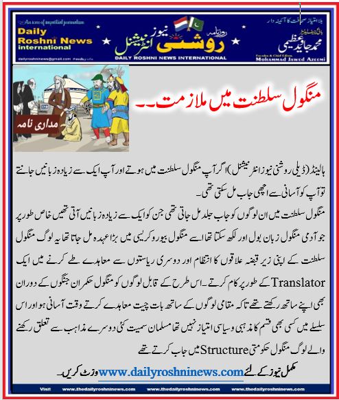 ہالینڈ(ڈیلی روشنی نیوز انٹرنیشنل )اگر آپ منگول سلطنت میں ہوتے اور آپ ایک سے زیادہ زبانیں جانتے تو آپ کو آسانی سے اچھی جاب مل سکتی تھی