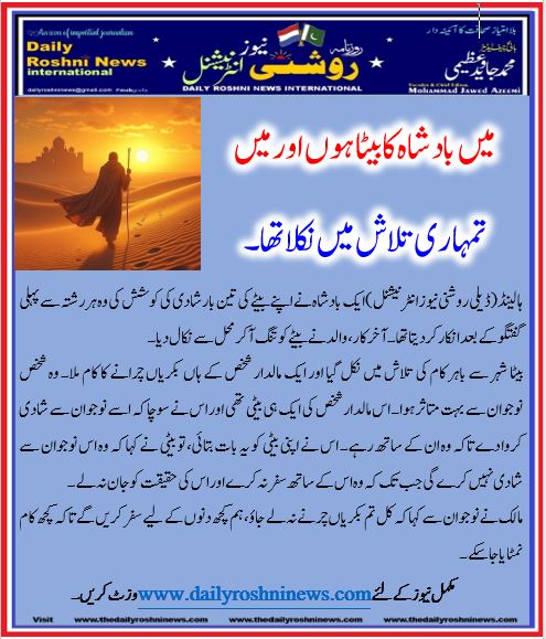 ہالینڈ(ڈیلی روشنی نیوز انٹرنیشنل )ایک بادشاہ نے اپنے بیٹے کی تین بار شادی کی کوشش کی وہ  ہر رشتہ سے پہلی گفتگو کے بعد انکار کر دیتا تھا۔  آخر کار، والد نے بیٹے کو تنگ آ کر محل سے نکال دیا۔