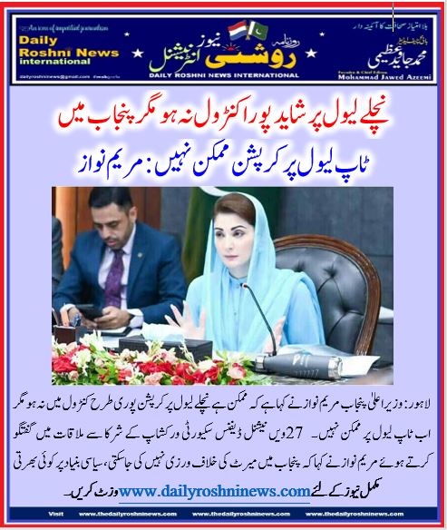 نچلے لیول پر شاید پورا کنٹرول نہ ہو مگر پنجاب میں ٹاپ لیول پر کرپشن ممکن نہیں: مریم نواز