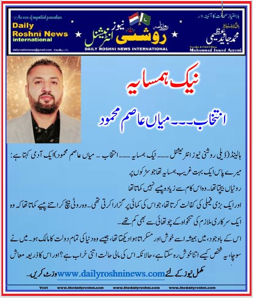 ہالینڈ(ڈیلی روشنی نیوز انٹرنیشنل ۔۔۔ نیک ہمسایہ ۔۔۔ انتخاب ۔ میاں عاصم محمود)ایک آدمی کہتا ہے: میرے پاس ایک بہت غریب ہمسایہ تھا جو سڑکوں پر