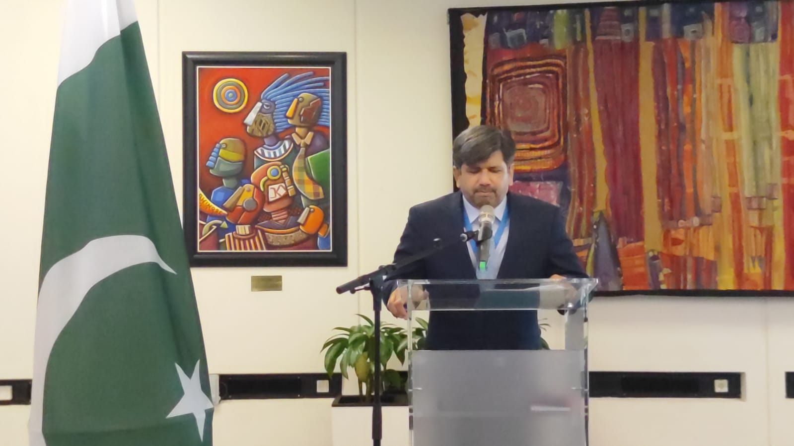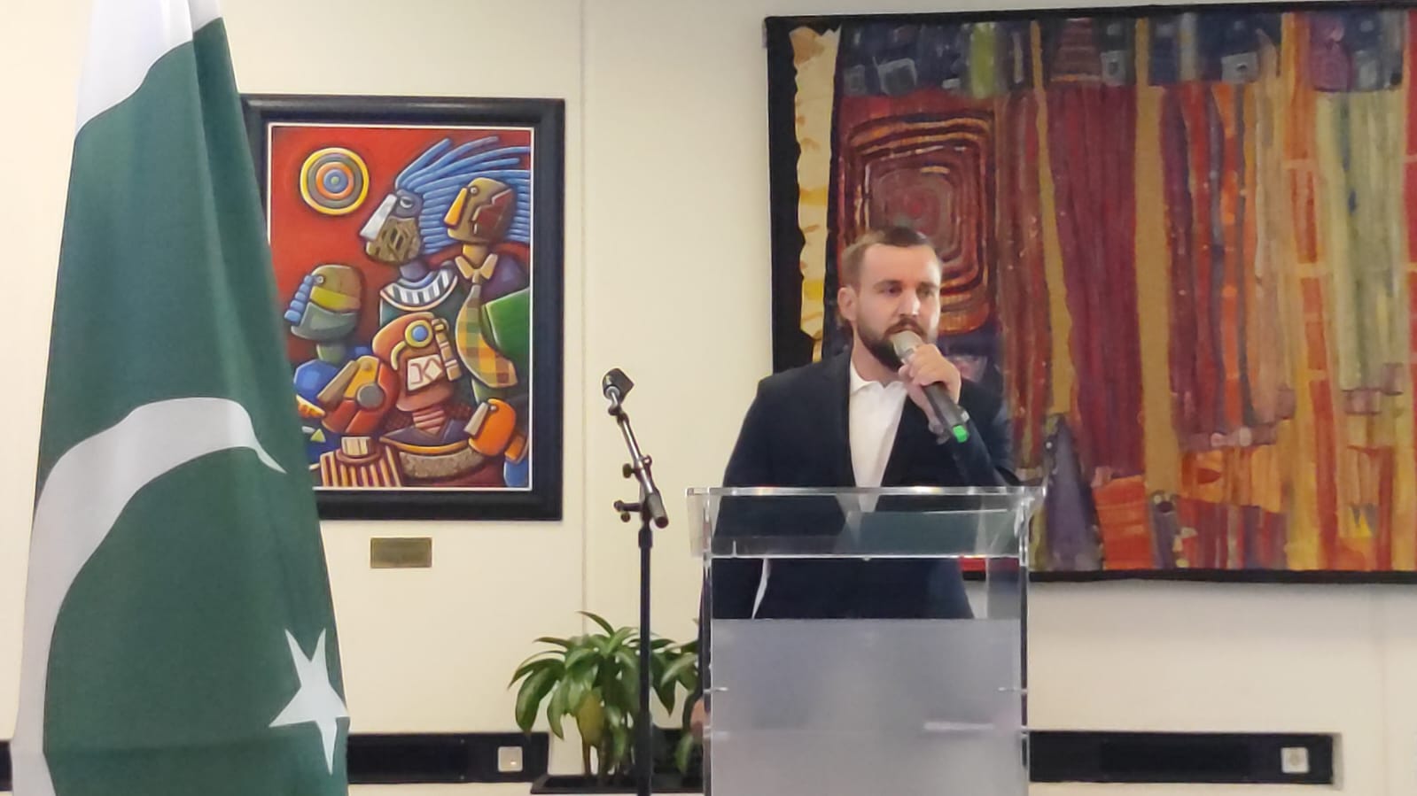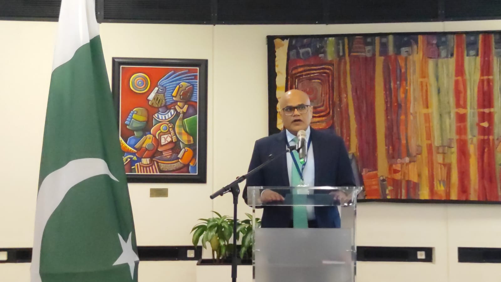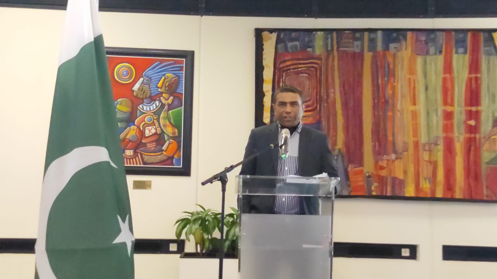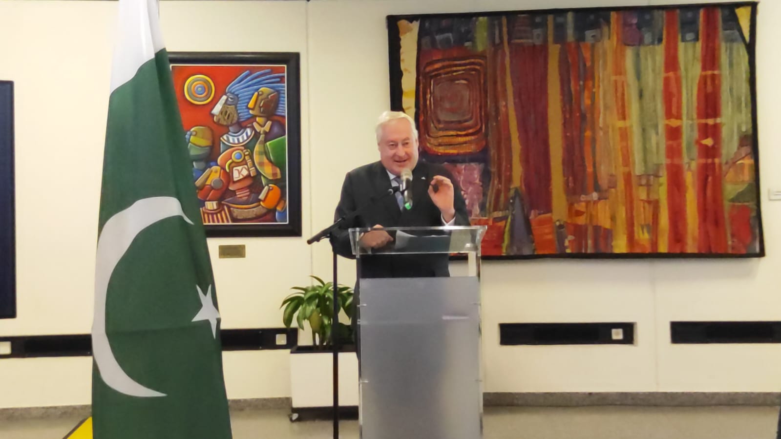 اپنے افتتاحی کلمات میں، سفیر محمد کامران اختر نے کہا کہ یہ نمائش قائداعظم محمد علی جناح کے وژن سے متاثر تھی، جو عالمی امن، انصاف اور خوشحالی کے لیے پاکستان کے عزم کی تصدیق کرتی ہے۔ پاکستان کے بھرپور فنی ورثے کی عکاسی کرتے ہوئے، انہوں نے اس بات پر روشنی ڈالی کہ نمائش میں موجود کام تکثیریت، پرامن بقائے باہمی اور رواداری کی اقدار کی نمائندگی کرتے ہیں، جو کہ تشدد، خوف اور خواہش سے پاک دنیا کے لیے پاکستان کی خواہش کا اظہار کرتے ہیں۔ انہوں نے سرحدوں کو عبور کرنے اور انسانیت کو متحد کرنے میں آرٹ کی متحد طاقت پر بھی زور دیا۔