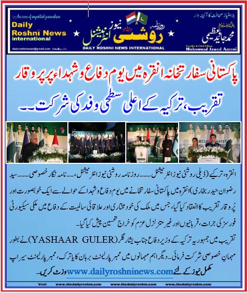 انقرہ، ترکیے (ڈیلی روشنی نیوز انٹرنیشنل ۔۔۔روزنامہ روشنی نیوز انٹرنیشنل،۔۔نامہ نگار خصوصی۔۔۔ سید رضوان حیدر بخاری)انقرہ میں پاکستانی سفارتخانے میں یوم دفاع و شہدا کے حوالے سے ایک خوبصورت اور پُر وقار تقریب کا انعقاد کیا گیا، جس میں ملک کی خودمختاری اور علاقائی سالمیت کے دفاع میں ملکی سیکیورٹی فورسز کی جرات، قربانیوں اور غیر متزلزل عزم کو خراج تحسین پیش کیا گیا۔
