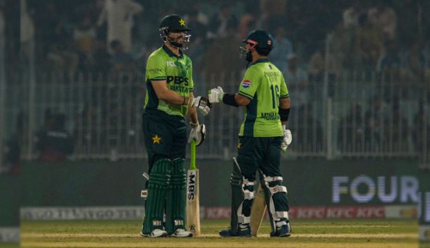 اس کے علاوہ فخر زمان 45، صائم ایوب 39، بابر اعظم 7، حسین طلعت 22 ، حسن نواز ایک اور محمد نواز 9 رنز بناکر آؤٹ ہوئے۔