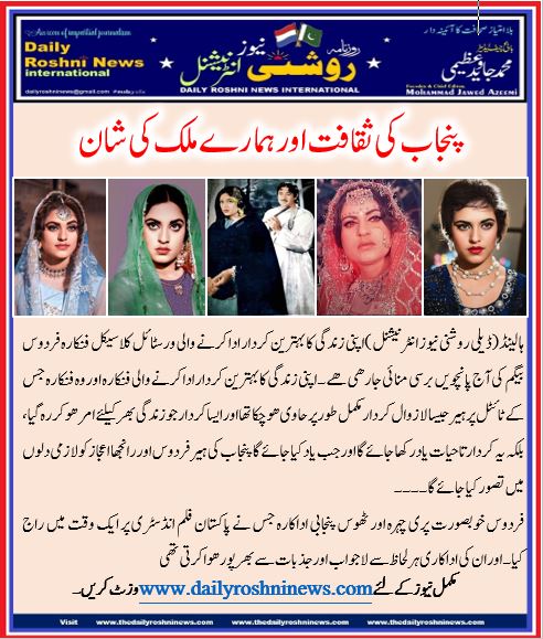 ہالینڈ(ڈیلی روشنی نیوز انٹرنیشنل )اپنی زندگی کا بہترین کردار ادا کرنے والی ورسٹائل کلاسیکل فنکارہ فردوس بیگم کی آج پانچویں برسی منائی جا رھی ھے
