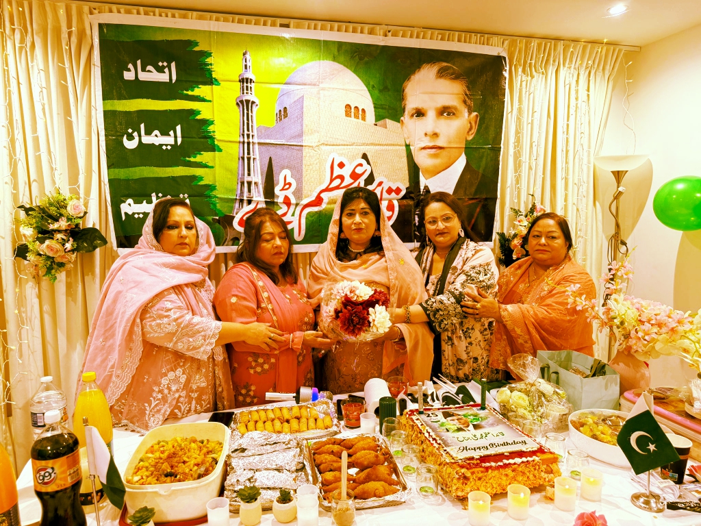 جس میں معروف انٹرنیشنل فیشن ڈیزائنر اور سمندر پار نیوز کی ڈائریکٹر محترمہ نیناں خان ، لیڈی فوکس ، نور ٹی وی اور ڈیلی پکار کی ڈائریکٹر ناصرہ خان ، معروف سماجی اور مذہبی شخصیت محترمہ عالیہ مرتضی ، ادارہ منہاج القرآن انٹرنیشنل کی سابقہ صدر محترمہ ستارہ ملک ، پی پی پی وومن ونگ کی جنرل سیکرٹری محترمہ سارہ کرن سینئر نائب فرحت عاشق ، نائب صدر فرح کریم ، نائب صدر فردوس شفقت ، پی ٹی آئی کی سینئر رہنما صائمہ بابری معروف سماجی و مذہبی شخصیت رانی کنول نے خصوصی شرکت کی اور اپنے خیالات کا اظہار کرتے ہوئے بانی پاکستان قائد اعظم محمد علی