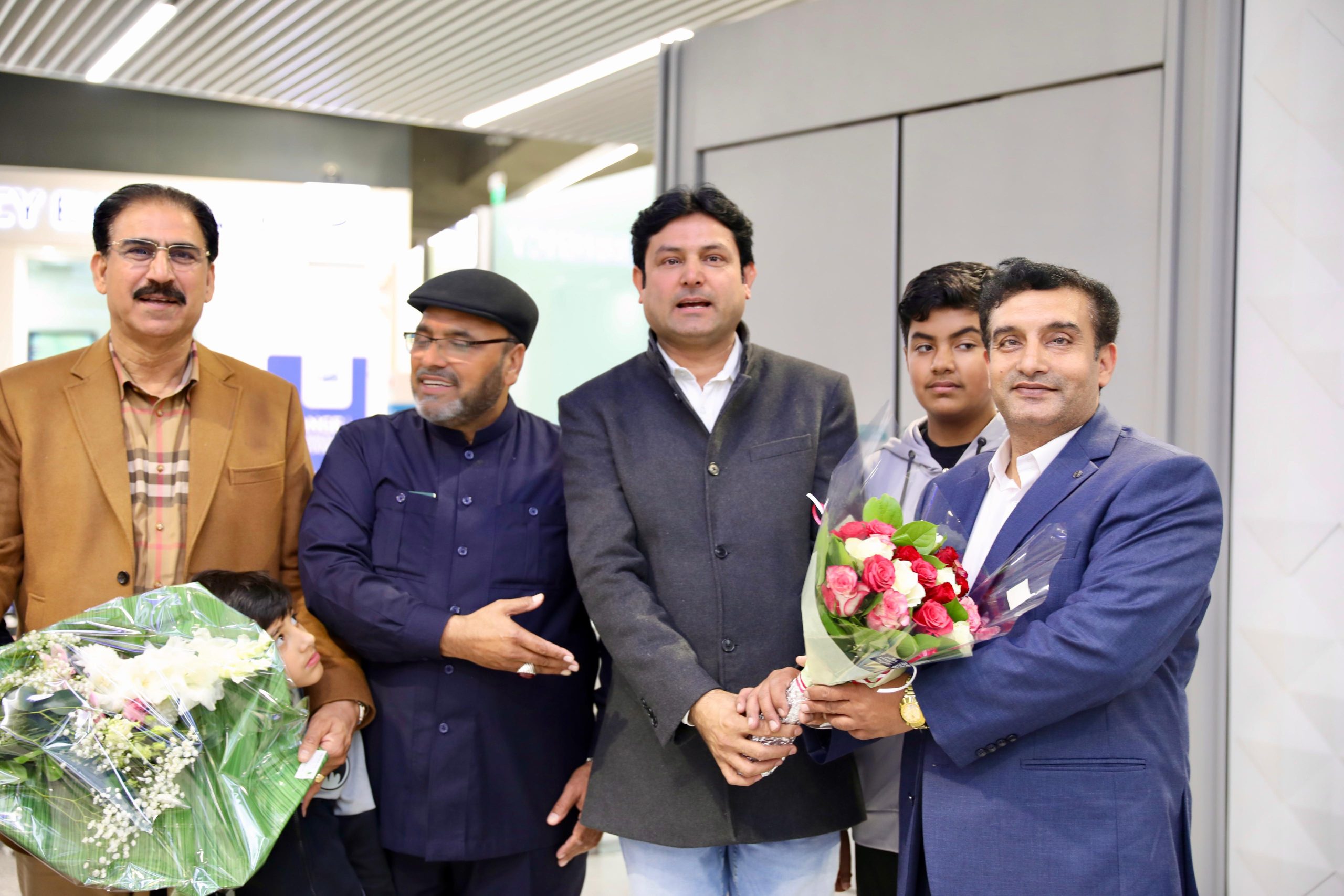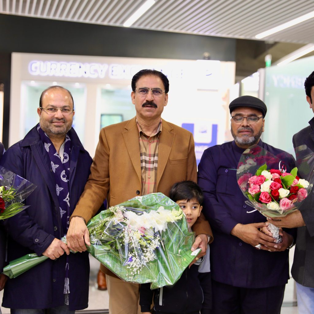 کمیونٹی نمائندوں اور دوست احباب نے پھولوں کے گلدستوں سے استقبال کیا ۔