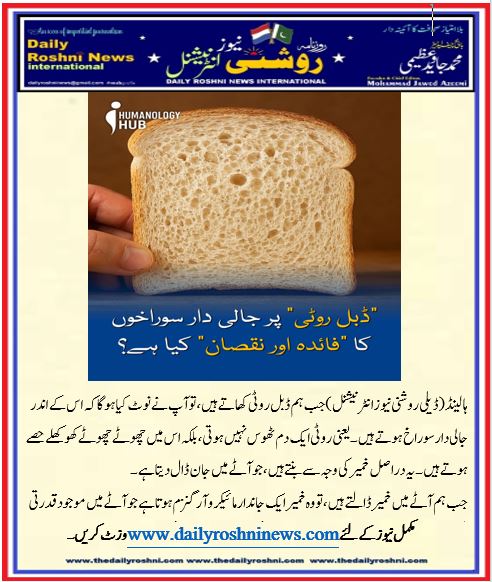 یہ سوراخ روٹی کو نرم اور ہلکا پھلکا بناتے ہیں اسے جلدی ہضم ہونے میں مدد دیتے ہیں۔ اور ذائقہ بھی بہتر محسوس ہوتا ہے اگر خمیر نہ ہو تو روٹی بالکل بھاری اور سخت بنے گی، جیسے پراٹھا یا چپاتی۔ تو اصل میں یہ سوراخ نہ صرف سائنسی عمل کا نتیجہ ہیں بلکہ ہماری روٹی کو مزیدار اور ہضم ہونے کے قابل بھی بناتے ہیں۔