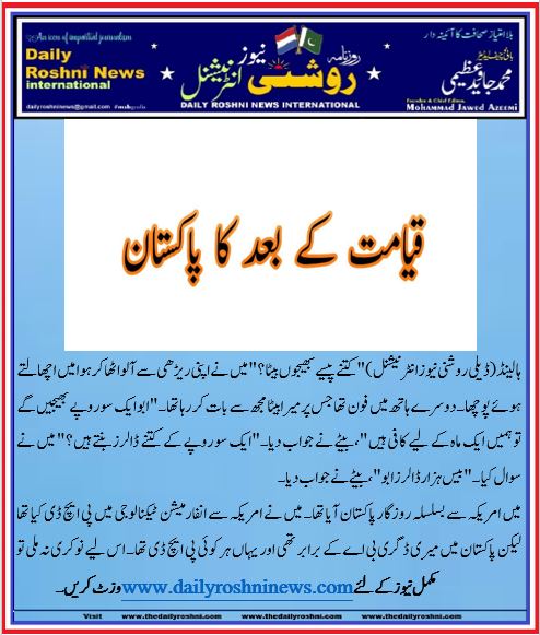 “بیٹا اتنے کم مت مانگا کرو۔ یہاں میں ماہانہ دو لاکھ روپے کما لیتا ہوں۔ ٹیکس ادا کر کے میرے پاس اس وقت تین کروڑ روپے اکٹھے ہو چکے ہیں۔ سارے بھیج دیتا ہوں”، میں نے کہا۔