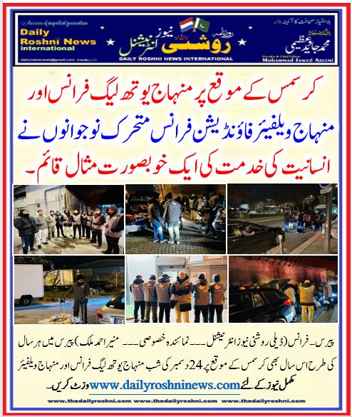 کرسمس کے موقع پر منہاج یوتھ لیگ فرانس اور منہاج ویلفیئر فاؤنڈیشن فرانس متحرک نوجوانوں نے انسانیت کی خدمت کی ایک خوبصورت مثال قائم ۔