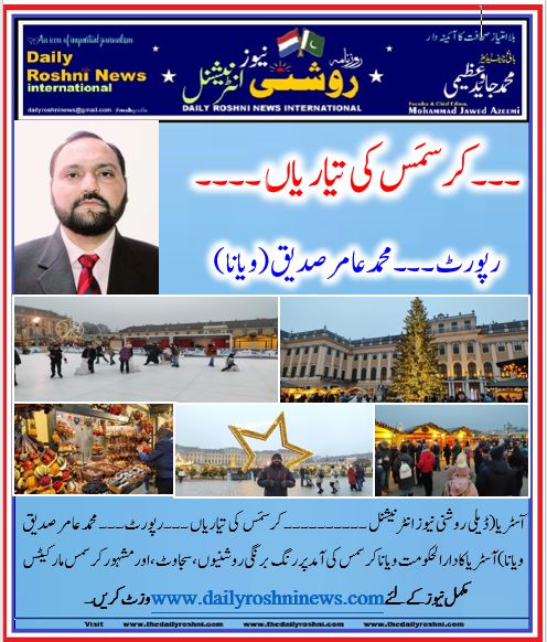 ٓسٹریا(ڈیلی روشنی نیوز انٹرنیشنل ۔۔۔۔۔۔۔۔۔۔ کرسمَس کی تیاریاں ۔۔۔رپورٹ۔۔۔ محمد عامر صدیق ویانا) آسٹریا کا دارالحکومت ویانا کرسمس کی آمد پر رنگ برنگی روشنیوں، سجاوٹ، اور مشہور کرسمس مارکیٹس سے جگمگا اٹھتا ہے*،