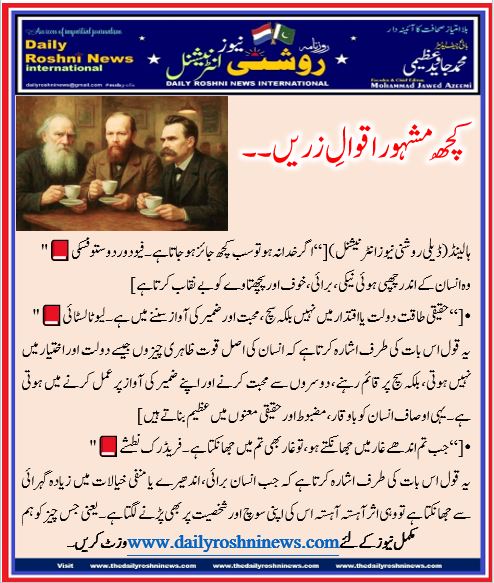 [“حقیقی طاقت دولت یا اقتدار میں نہیں بلکہ سچ، محبت اور ضمیر کی آواز سننے میں ہے۔ لیو ٹالسٹائی📕”