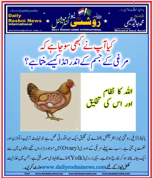ہالینڈ(ڈیلی روشنی نیوز انٹرنیشنل )انڈے کی تخلیق ایک ایسا قدرتی عمل ہے جو نہایت ترتیب، توازن اور حکمت پر مبنی ہے۔