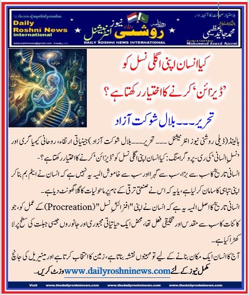 ہالینڈ(ڈیلی روشنی نیوز انٹرنیشنل ۔۔۔ تحریر۔۔۔بلال شوکت آزاد )جینیاتی ارتقاء، روحانی کیمیاگری اور ’نسلِ انسانی‘ کی ری-پروگرامنگ: کیا انسان اپنی اگلی نسل کو ’ڈیزائن‘ کرنے کا اختیار رکھتا ہے؟ –