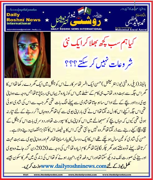 حسن ایک افسر تھا سرکار نے اس کو جنگل میں ایک گھر دے رکھا تھا اس کا گھر اس جگہ سے بہت دور تھا تب ہی کام کے سلسلے میں اس کو زیادہ تر یہاں ہی رہنا پڑتا تھا جس وجہ سے وہ اپنی بیوی ردا اور بچے کے لئے اداس سا ہو جاتا تھا شادی سے پہلے الگ بات تھی مگر جب سے اس کی شادی ہوئی تھی اس جگہ اکیلے اس کا دل نہ لگتا تھا اس نے کئی بار اپنی بیوی سے کہا تھا مگر وہ وہاں آ کر رہنے کے لئے تیار نہ ہوئی تھی کیوں کہ وہاں بچے کو سمبهالنے میں اس کو اپنی ماں کا سپورٹ تھا اور دوسری بات اس کو جنگل کے بیچ و بیچ اکیلے رہنے سے ڈر لگتا تھا مگر وہ نہیں جانتی تھی کہ اس کا یہ فیصلہ اس کا کتنا بڑا نقصان دینے والا ہے ۔