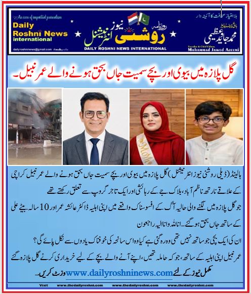 ہالینڈ(ڈیلی روشنی نیوز انٹرنیشنل )گل پلازہ میں بیوی اور بچے سمیت جاں بحق ہونے والے عمر نبیل کراچی کے علاقے نارتھ ناظم آباد ، بلاک جے کے رہائشی اور ایک تاجر گروپ سے تعلق رکھتے تھے