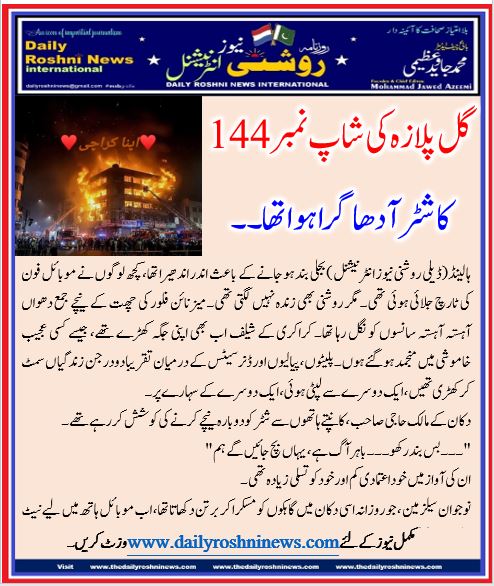اور گل پلازہ کی  شاپ نمبر 144، جو کبھی چمکتے برتنوں  کی دکان تھی، خاموشی کا ایک بند کمرہ بن گئی. جہاں یقین زندہ رہا، مگر زندگی نہ بچ سکی۔