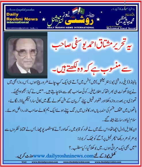 ہالینڈ(ڈیلی روشنی نیوز انٹرنیشنل )میں آفس میں آتے ہی ایک کپ چائے ضرور پیتا ہوں۔ اُس روز ابھی میں نے پہلا گھونٹ ہی بھرا تھا کہ اطلاع ملی۔