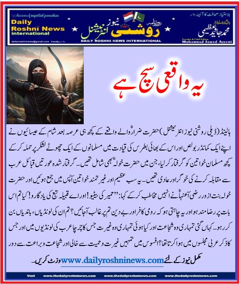 ہالینڈ(ڈیلی روشنی نیوز انٹرنیشنل )حضرت ضرارؓوالے واقعے کے کچھ ہی عرصہ بعد شام کے عیسائیوں نے اپنے ایک کمانڈر بولص اور اس کے بھائی بطرس کی قیادت میں مسلمانوں کے ایک چھوٹے لشکر پر حملہ کرکے کچھ مسلمان خواتین کو گرفتار کرلیا، جن میں حضرت خولہؓ بھی شامل تھیں۔گرفتار شدہ عورتیں قبائل عرب سے مقابلہ کرنے کی خوگر اورعادی تھیں۔ یہ سب عظیم اور غیرتمند خواتین آپس میں جمع ہوئیں اور حضرت خولہ بنت ازور رضی آ عنہا ؓ نے انہیں مخاطب کرکے کہا:’’حمیر کی بیٹیو! اور اے قبیلہ تبع کی یادگارو! کیا تم اس بات پر رضا مند ہو اور یہ چاہتی ہو کہ رومی کافر اور بے دین تم پر غالب آجائیں؟ تم ان کی لونڈیاں، باندیاں بن کر رہو۔ کہاں گئی تمہاری وہ شجاعت اور کیا ہوئی تمہاری وہ غیرت جس کا چرچا عرب کی لونڈیوں میں اور جس کا ذکر عربی مجلسوں میں ہوا کرتاتھا؟ افسوس میں تمہیں غیرت وحمیت سے خالی اور شجاعت وبراعت سے دور دیکھ رہی ہوں۔ میرے نزدیک اس آنے والی مصیبت سے تمہارا قتل ہوجانا بہتر اور رومیوں کی خدمت کرنے سے مرجاناافضل ہے۔‘‘یہ سن کر عفیرہ بنت عفار حمیریہؓ نے کہا:’’اے بنت ازور! تم نے ہماری شجاعت وبراعت، عقل ودانائی، بزرگی اور مرتبہ کے متعلق جو کچھ بیان کیا، وہ واقعی سچ ہے اور یہ بھی صحیح ہے کہ ہمیں گھوڑے کی سواری کی عادت ہے اور دشمن کا رات کے وقت بھی قافیہ تنگ کردینا آتا ہے۔ مگر یہ تو بتلائیے کہ جو شخص نہ گھوڑا رکھتا ہو، نہ نیزہ، اس کے پاس کوئی ہتھیار ہو نہ تلوار ، ایسا شخص کیا کرسکتاہے؟ آپ کو معلوم ہے کہ ہمیں دشمن نے اچانک گرفتار کرلیا۔ ہمارے پاس اس وقت کوئی سامان نہیں، ہم بکریوں کی طرح ادھر ادھر بھٹکتے پھر رہے ہیں۔‘‘یہ سن کر حضرت خولہ رضی آعنہا نے کہا:’’قبیلہ تبایعہ کی بیٹیو! تمہاری غفلتوں کا کچھ ٹھکانا ہے؟ خیموں کی لکڑیاں اور ستون تو موجود ہیں۔ ہمیں چاہئے کہ ہم انہیں اٹھا اٹھا کر بدبختوں پر حملہ آور ہوں۔ ممکن ہے کہ ارحم الراحمین ہماری مدد کریں اور ہم غالب آجائیں۔ ورنہ کم از کم شہید ہی ہو جائیں تاکہ یہ کلنک کا ٹیکہ تو ہماری پیشانیوں پر نہ لگنے پائے۔اس کے بعد ہر ایک عورت نے خیمہ کی ایک ایک لکڑی اٹھائی۔ حضرت خولہ بنت ازور ؓخود بھی کمر باندھ کر ایک بڑی سی لکڑی کاندھے پر رکھ کر آگے ہوئیں۔ حضرت خولہؓنے اپنی اس نسوانی فوج کو مخاطب کیا اگر تم کمزور ہوگئیں تو یاد رکھنا تمہارے سینوں کو نیزے توڑ دیں گے اور تمہاری گردنوں کو تلواریں کاٹ ڈالیں گی۔ تمہاری کھوپڑیاں اڑ جائیں گی اور تم سب یہیں ڈھیر ہو کر رہ جاؤ گی۔یہ کہہ کر آپ نے قدم بڑھایا اور ایک رومی کے سر پر اس زور سے لکڑی ماری کہ وہ زمین پر گر پڑا اور مرگیا۔ رومیوں میں کھلبلی پڑگئی۔ جیسے ہی کوئی شخص ان کے قریب پہنچتا تھا یہ پہلے لکڑیوں سے اس کے گھوڑے کے ہاتھ پیر توڑ دیتی تھیں اور جس وقت وہ سوار الٹے منہ گرتا تھا تو ضربیں مار مار کر اس کا سر توڑ دیتی تھیں، اس لیے ان تک کوئی نہ پہنچ سکا۔ان بہادر خواتین نے اسی طرح تیس سوار موت کے گھاٹ اتاردیئے۔ بطرس یہ دیکھ کر آگ بگولا ہوگیا۔ گھوڑے سے نیچے اترا اور اس کے ساتھ اس کے ہمراہی بھی پیدل ہوگئے۔ پھر وہ سب نیزے اور تلواریں لے کر خواتین اسلام کی طرف بڑھے۔ خواتین آپس میں ایک دوسرے کی طرف لپکیں اور آپس میں کہنے لگیں: