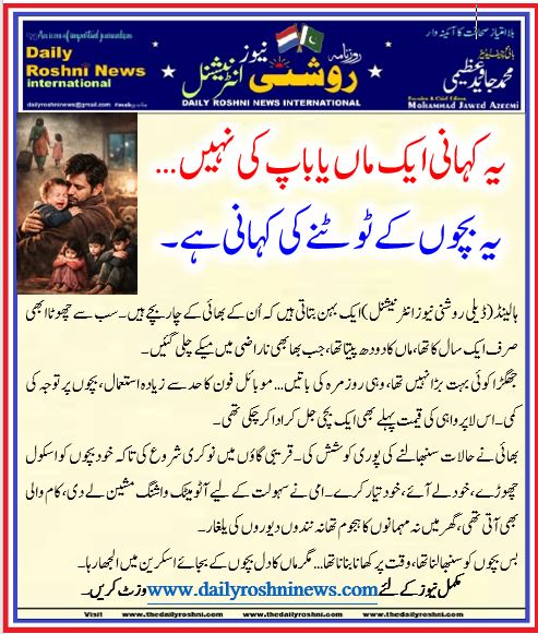 ہالینڈ(ڈیلی روشنی نیوز انٹرنیشنل )ایک بہن بتاتی ہیں کہ اُن کے بھائی کے چار بچے ہیں۔ سب سے چھوٹا ابھی صرف ایک سال کا تھا، ماں کا دودھ پیتا تھا، جب بھابھی ناراضی میں میکے چلی گئیں۔