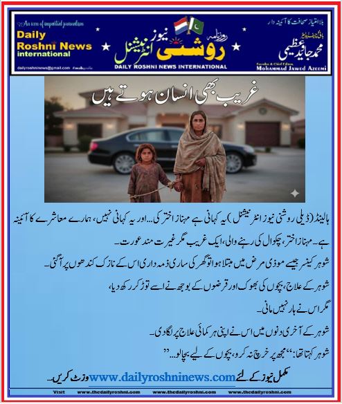 ہالینڈ(ڈیلی روشنی نیوز انٹرنیشنل )یہ کہانی ہے مہناز اختر کی…اور یہ کہانی نہیں، ہمارے معاشرے کا آئینہ ہے۔مہناز اختر، چکوال کی رہنے والی، ایک غریب مگر غیرت مند عورت۔