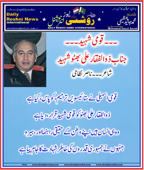 ذوالفقار علی بھٹو کو قومی شہید قرار ، دیا ہے