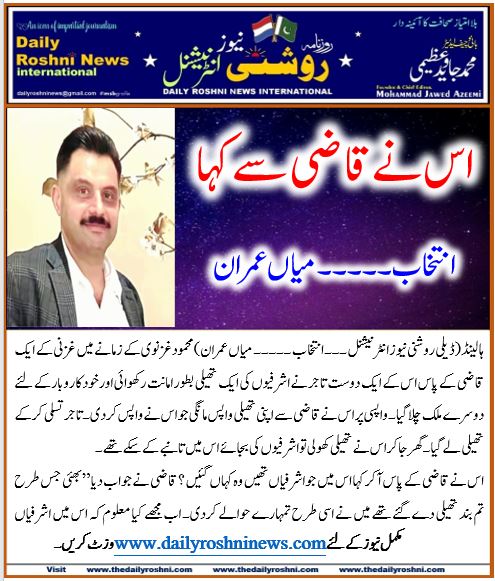 ہالینڈ(ڈیلی روشنی نیوز انٹرنیشنل ۔۔۔ انتخاب ۔۔۔۔۔ میاں عمران)محمود غزنوی کے زمانے میں غزنی کے ایک قاضی کے پاس اس کے ایک دوست تاجر نے اشرفیوں کی ایک تھیلی بطور امانت رکھوائی اور خود کاروبار کے لئے دوسرے ملک چلا گیا۔ واپسی پر اس نے قاضی سے اپنی تھیلی واپس مانگی جو اس نے واپس کردی۔ تاجر تسلی کرکے تھیلی لے گیا۔ گھر جا کر اس نے تھیلی کھولی تو اشرفیوں کی بجائے اس میں تانبے کے سکے تھے۔