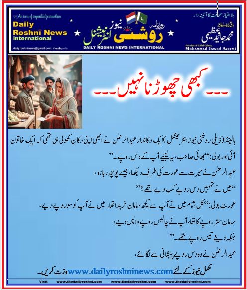 ہالینڈ(ڈیلی روشنی نیوز انٹرنیشنل )ایک دکاندار عبدالرحمٰن نے ابھی اپنی دکان کھولی ہی تھی کہ ایک خاتون آئی اور بولی :
