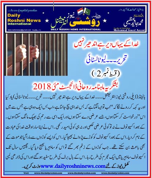 ہالینڈ(ڈیلی روشنی نیوز انٹرنیشنل ۔۔۔ خدا کے یہاں دیر ہے اندھیر نہیں۔۔۔ تحریر۔۔۔لیوٹالسٹائی)یاد کیا اور یہ کہہ کر رونے لگا کہ “اب تو ایسا لگتا ہے کہ بس خدا ہی سچ جانتا ہے، اب بس ایک وہ ہی ہے جس سے میں درخواست کر سکتا ہوں، جسے عرضی دے سکتا ہوںاور ایک اسی سے رحم کی بھیک مانگ سکتا ہوں۔”