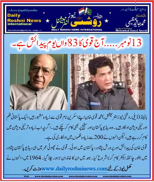 ۔13 نومبر….. آج قوی کا 83 واں یوم پیدائش ہے۔
