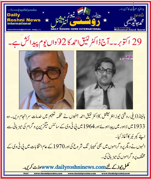 ہالینڈ(ڈیلی روشنی نیوز انٹرنیشنل )ڈاکٹر لئیق احمد جنہوں نے محکمہ تعلیم میں خدمات سرانجام دیں۔ وہ 1933 میں لاہور میں پیدا ہوئے اور 1964 میں پی ٹی وی کے سائنس میگزین پروگرام کی میزبانی سے اپنے کیرئیر کا آغاز کیا۔