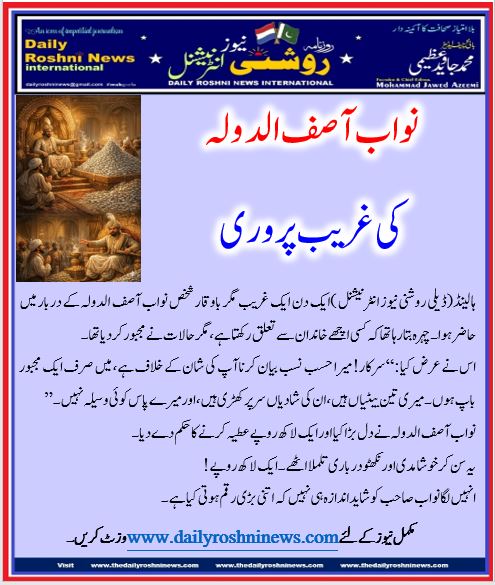 ہالینڈ(ڈیلی روشنی نیوز انٹرنیشنل )ایک دن ایک غریب مگر باوقار شخص نواب آصف الدولہ کے دربار میں حاضر ہوا۔