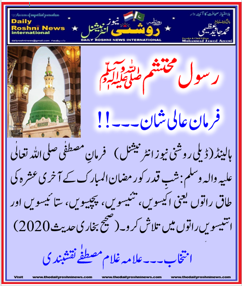شبِ قدر کو رمضان المبارک کے آخری عشرہ کی طاق راتوں یعنی اکیسویں، تئیسویں، پچیسویں، ستائیسویں اور انتیسویں راتوں میں تلاش کرو۔