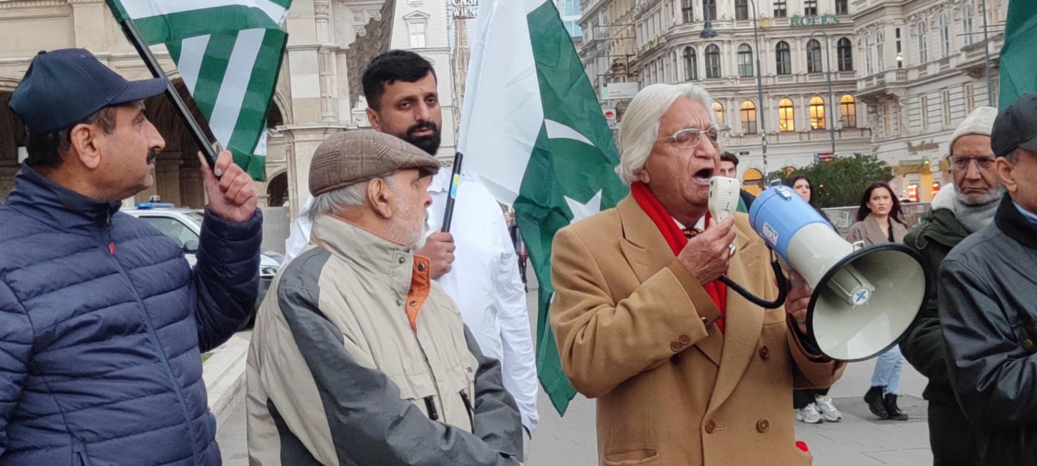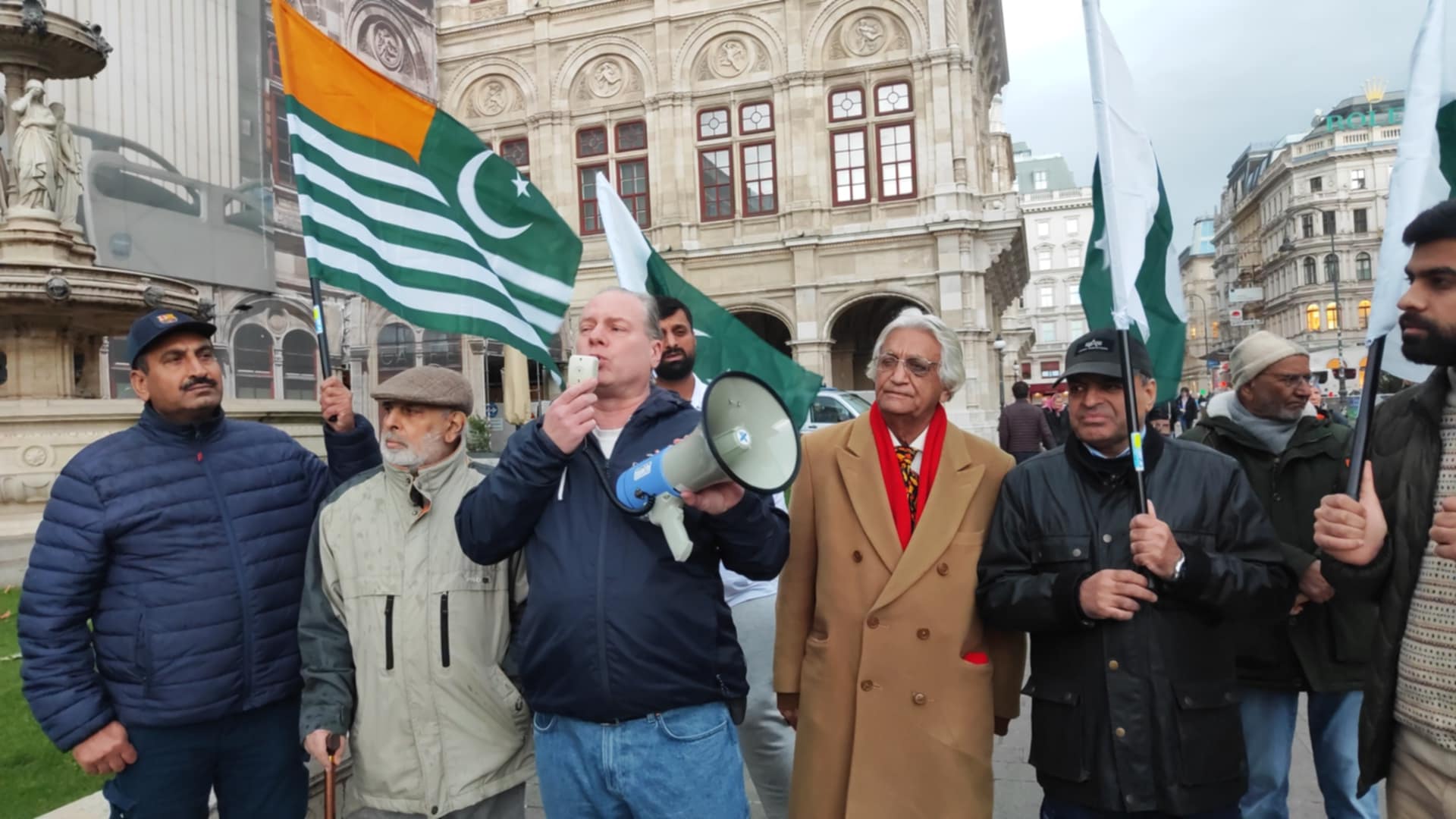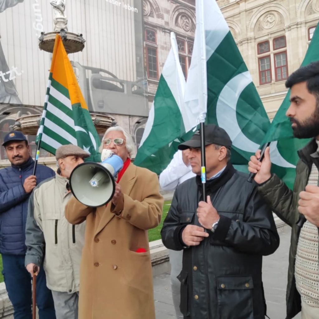 Speakers who participated in the demonstration included Kashmir Freedom Front Austria Chairman Professor Mussrat Shaukat Awan, Human rights activist Michael Proebsting,Azhar Shah and Alhaj Khawaja Naseem.
