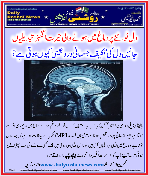 ہالینڈ(ڈیلی روشنی نیوز انٹرنیشنل )کیا آپ جانتے ہیں کہ دل ٹوٹنے کا غم ہمارے دماغ میں ویسے ہی اثرات ڈالتا ہے جیسے جسمانی چوٹ لگنے پر ہوتا ہے؟ جی ہاں! جدید MRI اسکینز سے یہ ثابت ہوا ہے کہ جب دل ٹوٹتا ہے تو دماغ میں ایسی تبدیلیاں آتی ہیں جو بالکل ویسی ہی ہوتی ہیں جیسے کسی سے نشے کی لت چھڑانے پر ہوتی ہیں۔ آئیے آپ کو اس حیرت انگیز سائنس کے پیچھے چھپے راز بتاتے ہیں.