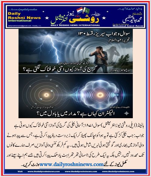 ہالینڈ(ڈیلی روشنی نیوز انٹرنیشنل )سوال ۱۸۷۱: آسمانی بجلی کی گرج کی آواز اتنی خوفناک کیوں ہوتی ہے