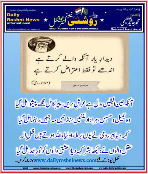کہہ دیا پیر ِ رومی نے یوں برملا، اولیاء اللہ ہوتے ہیں ظلِ الہ