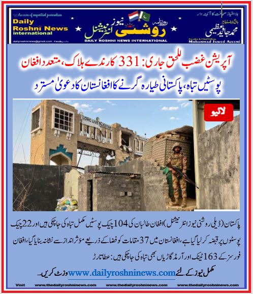 آپریشن غضب للحق جاری: 331 کارندے ہلاک، متعدد افغان پوسٹیں تباہ، پاکستانی طیارہ گرنے کا افغانستان کا دعویٰ مسترد