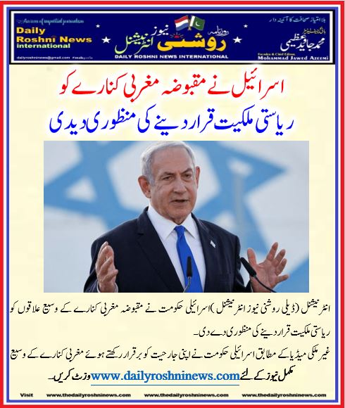 انٹرنیشنل (ڈیلی روشنی نیوز انٹرنیشنل )اسرائیلی حکومت نے مقبوضہ مغربی کنارے کے وسیع علاقوں کو ریاستی ملکیت قرار دینے کی منظوری دے دی۔