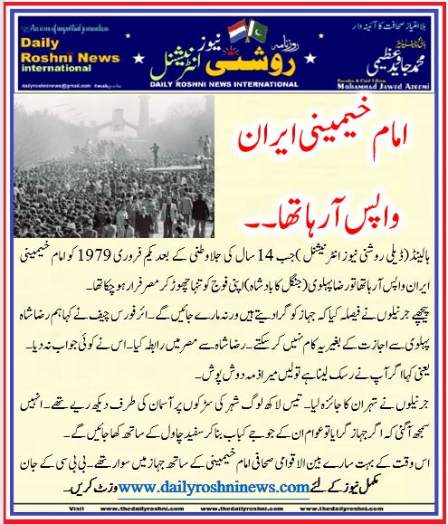 ہالینڈ(ڈیلی روشنی نیوز انٹرنیشنل )جب 14 سال کی جلاوطنی کے بعد یکم فروری 1979 کو امام خیمینی ایران واپس آرہا تھا تو رضا پہلوی (جنگل کا بادشاہ) اپنی فوج کو تنہا چھوڑ کر مصر فرار ہوچکا تھا۔