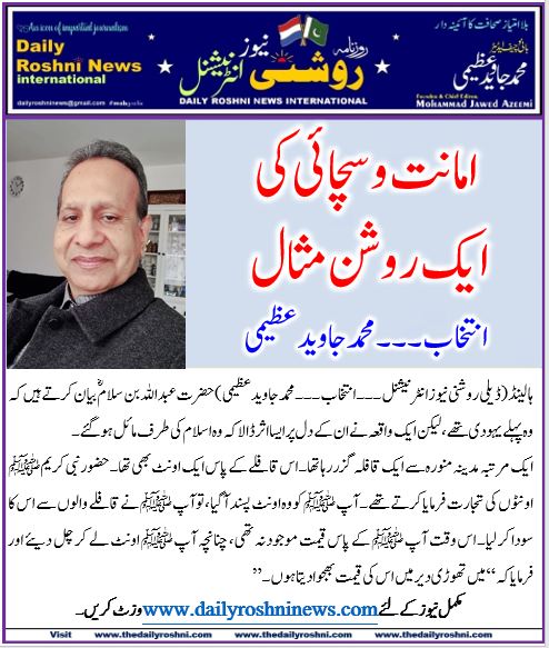 ہالینڈ(ڈیلی روشنی نیوز انٹرنیشنل )حضرت عبداللہ بن سلامؓ بیان کرتے ہیں کہ وہ پہلے یہودی تھے، لیکن ایک واقعہ نے ان کے دل پر ایسا اثر ڈالا کہ وہ اسلام کی طرف مائل ہوگئے۔