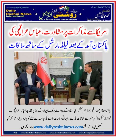 ایرانی سفارت خانے کی جانب سے ہفتے کو جاری بیان میں کہا گیا کہ ایرانی وزیر خارجہ عباس عراقچی نے پاکستان آنے کے بعد پہلی باضابطہ ملاقات فیلڈ مارشل عاصم منیر سے ملاقات کی۔