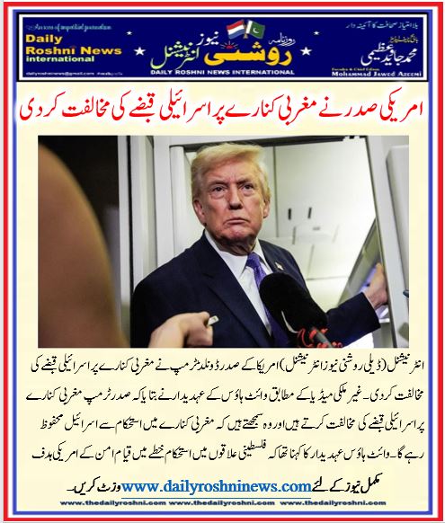 انٹرنیشنل (ڈیلی روشنی نیوز انٹرنیشنل )امریکا کے صدر ڈونلڈ ٹرمپ نے مغربی کنارے پر اسرائیلی قبضےکی مخالفت کر دی۔