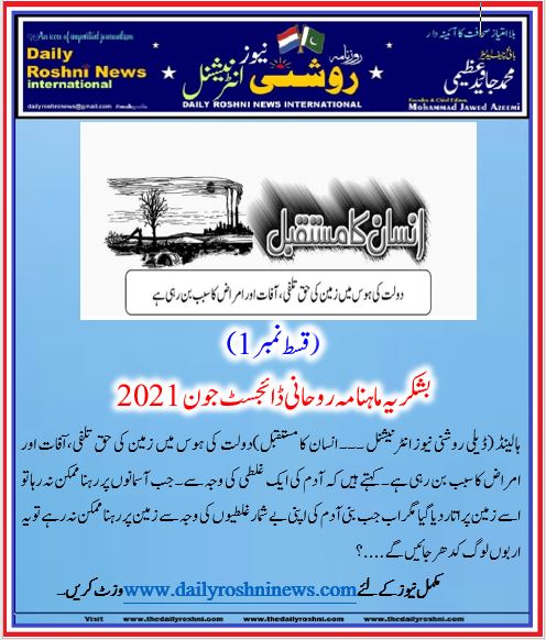 ہالینڈ (ڈیلی روشنی نیوز انٹرنیشنل ۔۔۔ انسان کا مستقبل)دولت کی ہوس میں زمین کی حق تلفی، آفات اور امراض کا سبب بن رہی ہے۔ کہتے ہیں کہ آدم کی ایک غلطی کی وجہ سے۔ جب آسمانوں پر رہنا ممکن نہ رہا تو اسے زمین پر اتار دیا گیا مگر اب جب بنی آدم کی اپنی بے شمار غلطیوں کی وجہ سے زمین پر رہنا ممکن نہ رہے تو یہ اربوں لوگ کدھر جائیں گے….؟