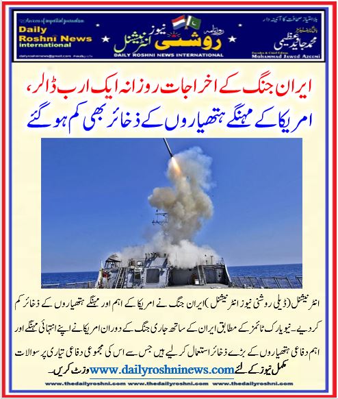 انٹرنیشنل(ڈیلی روشنی نیوز انٹرنیشنل )ایران جنگ نے امریکا کے اہم اور مہنگے ہتھیاروں کے ذخائر کم کردیے۔