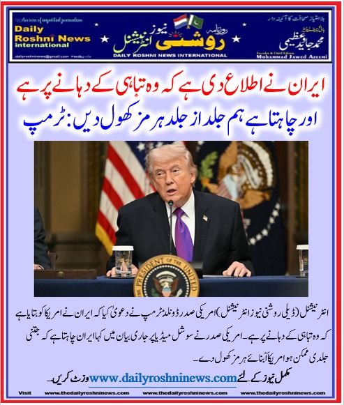 انٹرنیشنل (ڈیلی روشنی نیوز انٹرنیشنل )امریکی صدر ڈونلڈ ٹرمپ نے دعویٰ کیا کہ ایران نے امریکا کو بتایا ہے کہ وہ تباہی کے دہانے پر ہے۔